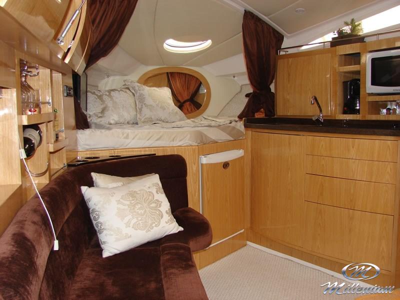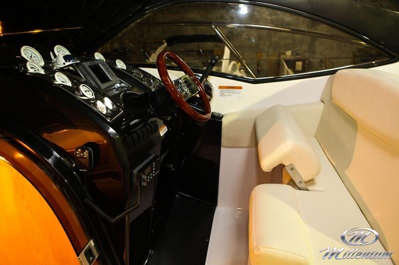 Pé direito da cabine 1,94m, Passadiço lateral, Plataforma ampla, Excelente navegação, Casa de maquinas para ate dois motores, Box no banheiro, Excelente acabamento e Pernoite para até 5 pessoas